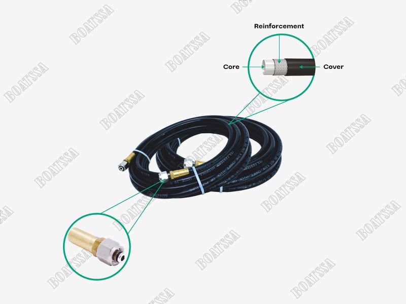 Hydraulic Hose Tube: It is designed to carry steering fluid between the helm pump and cylinder, it is flexible for easy routing and tested to withstand pressures exceeding normal operation, ensuring leak-free performance.