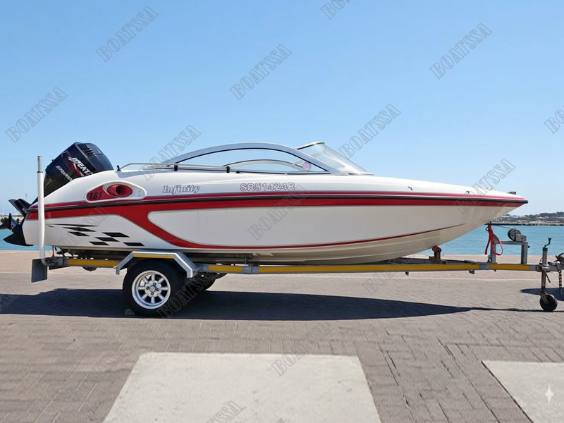 Infinity 181, powered by a 150HP Mercury outboard EFI, with a 19P Stainless Steel propeller. All new upholstery seats, all gauges, canopy and 4 Life Jackets included. The boat is Surveyed (COF Category R), and the trailer road worthy registered. Perfect for family outings or leisure trips, this boat offers comfort and performance for unforgettable moments on the water.