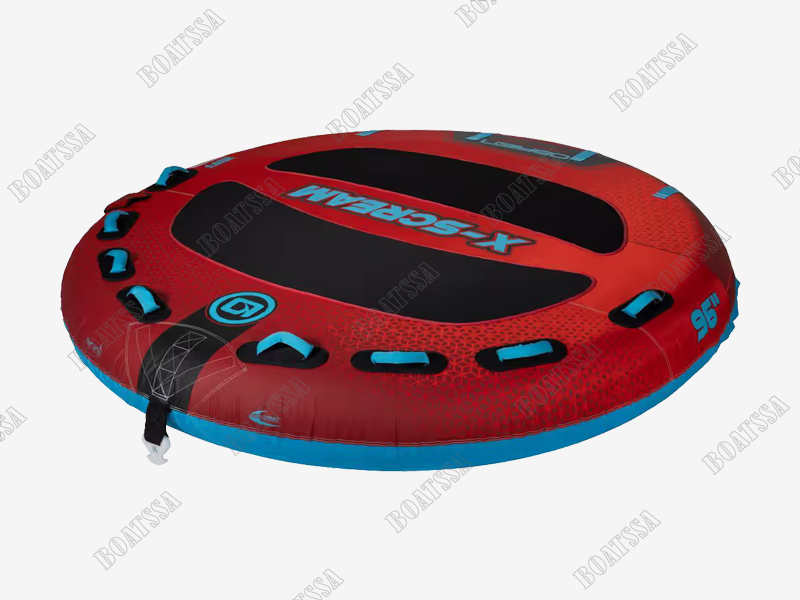 The flat deck makes it comfortable to lay or kneel on, especially with the two EVA pads underneath their arms and body. The 8 handles with EVA knuckle guards allow the riders to modify their position on the tube to handle any upcoming challenges that the driver musters up. So if you are looking for a four-rider deck tube that provides tons of fun for family and friends, you can’t go wrong with the O’Brien X-Scream.